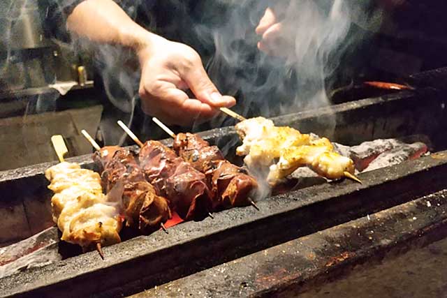 焼き鳥の美味しさは、「鮮度」で決まります。そのためしんばしではあえて、仕入れる鶏の産地を絞っていません。千葉県産 水郷赤鶏や鳥取県産 大山鶏など、各地の銘柄鶏からその時に一番美味しいものを選別しています。また、冷凍肉をいっさい使わず、生肉をチルド配送にて仕入れております。そして、炭には土佐備長炭、紀州備長炭を組み合わせ鶏のもつ「色・香り・風味」を活かした焼き鳥をご提供しております。